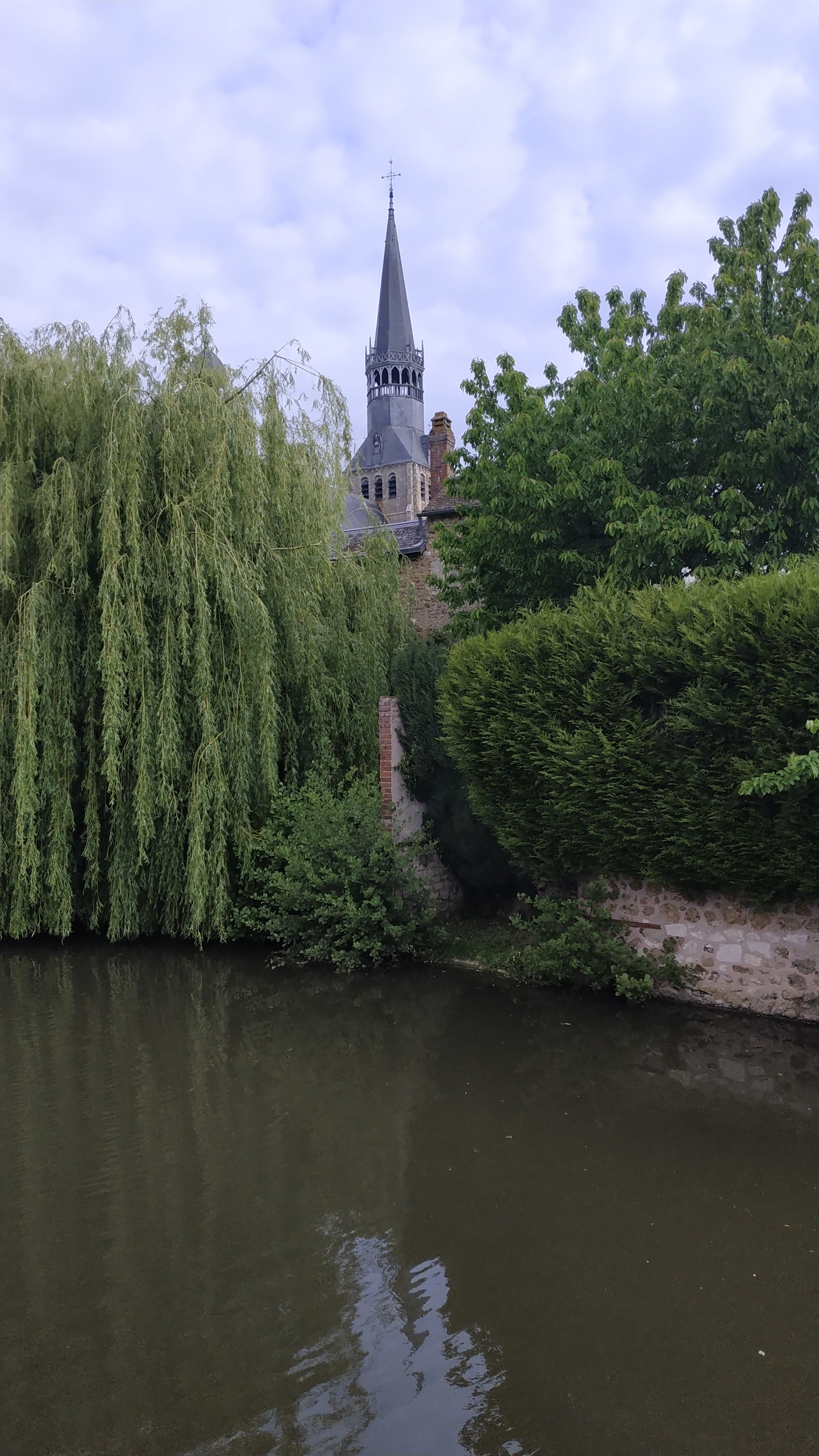 En préparation d'un projet au Centre Hospitalier Henri Ey, juste en se retournant, le magnifique clocher de Bonneval depuis les bords de l'Eure et de l'autre côté le logis renaissance marquant l'entrée du site en partie installé sur celui d'une ancienne abbaye...